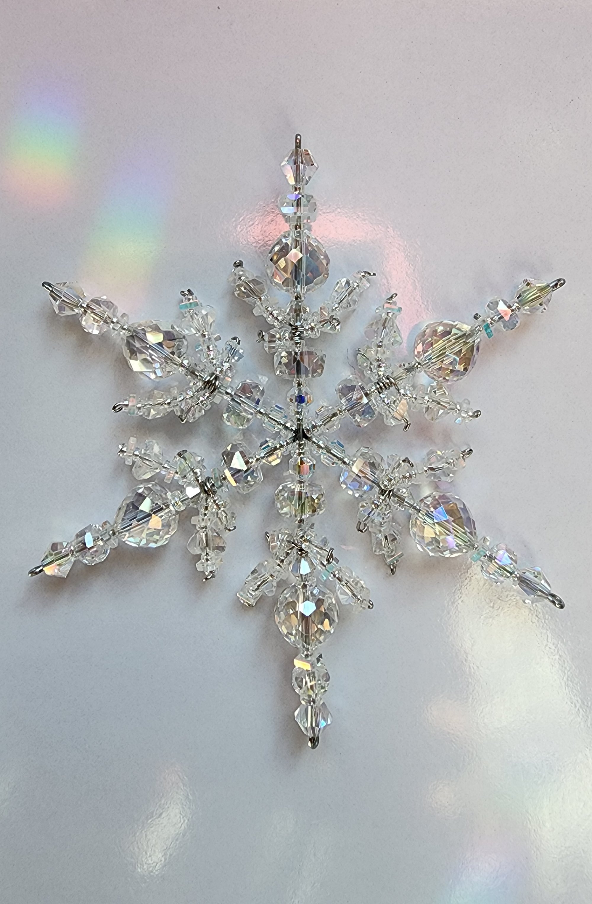 Snowflake Ornament (Austrian Crystal): A luxury version of our snowflake ornament, made entirely of magnificent, sparkling Austrian crystal beads, with hook beautifully boxed for gifting.